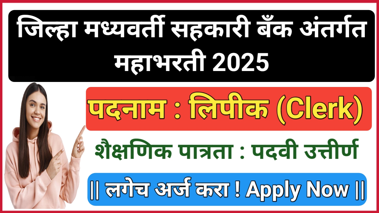 जिल्हा मध्यवर्ती सहकारी बँक अंतर्गत लिपिक पदासाठी महाभरती ; Apply Now !